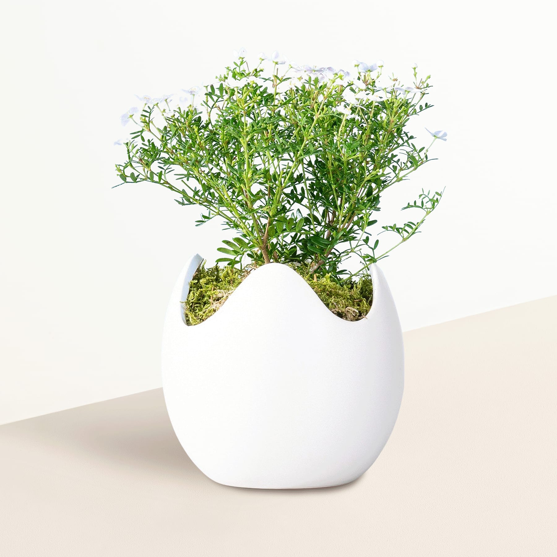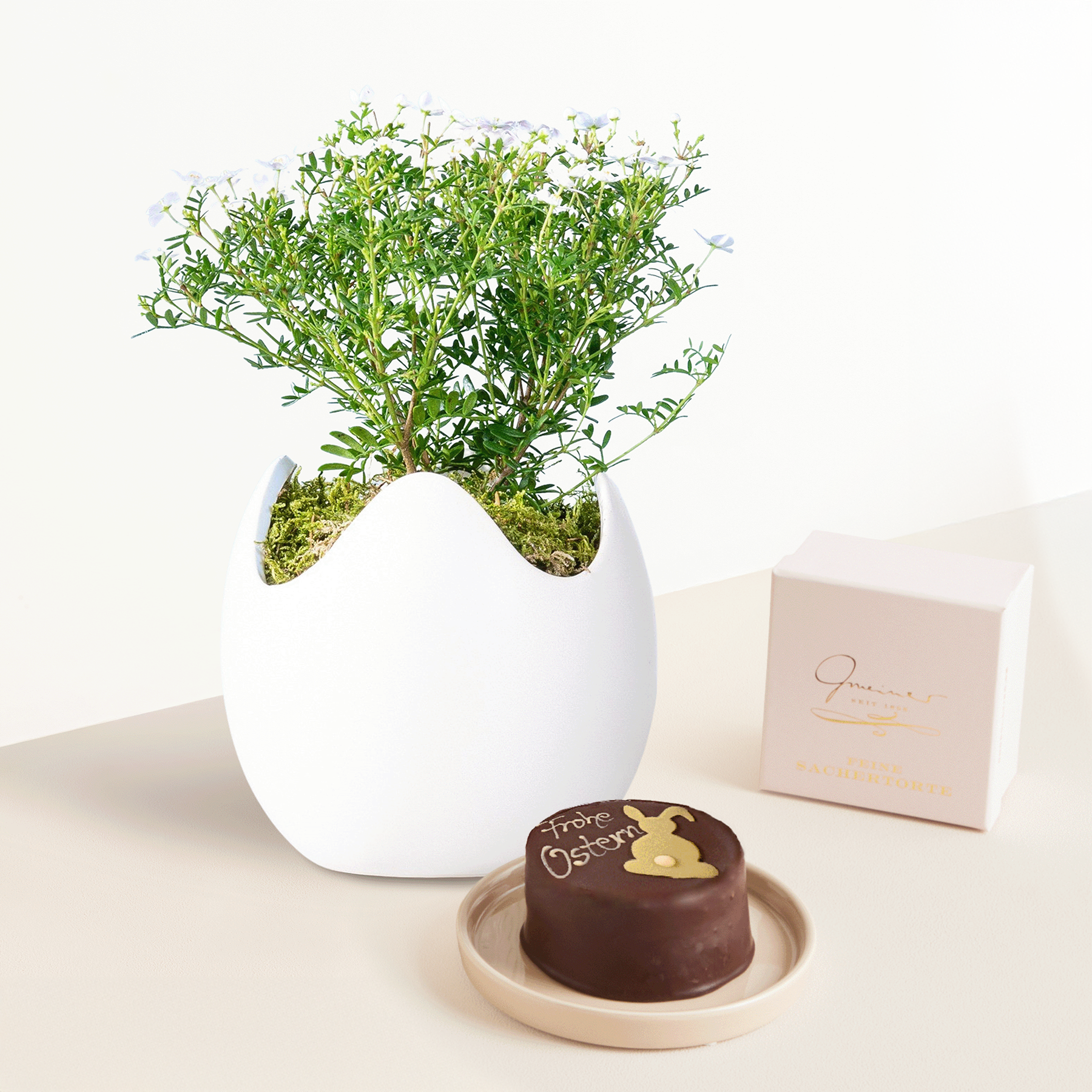 Weißt du, was das Schöne an Topfpflanzen ist? Dass sie lange Freude bereiten! Die hübsche Boronia, auch bekannt unter der Bezeichnung Korallenraute, ist eine beliebte Blühpflanze, die sich während der Sommermonate auf dem Balkon und der Terrasse sehr wohl fühlt. Ihre zahlreichen, weiß- bis rosafarbenen Blüten sehen nicht nur hübsch aus, sie verströmen auch einen intensiven Duft. Unsere Boronia Ostertraum hat eine Topfgröße von etwa 9 cm und erreicht dich oder deinen Beschenkten in einem zauberhaften Übertopf in Osterei-Form. Platziere sie an einem sonnigen bis halbschattigen Standort und versorge sie ausreichend mit Wasser. Dein neuer Liebling ist immergrün und sollte im besten Fall bei fünf bis zehn Grad überwintern.